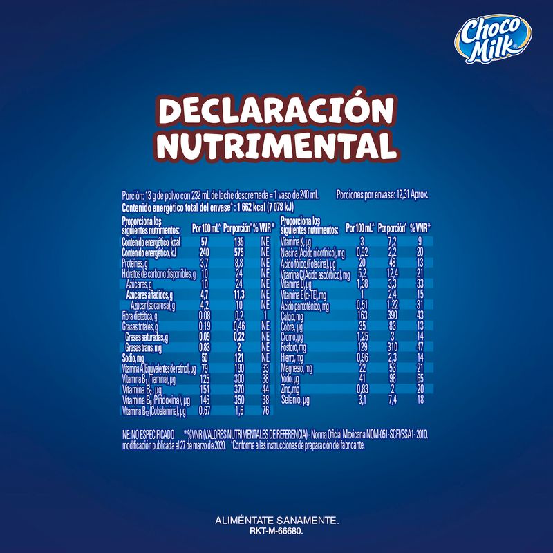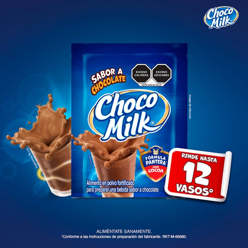 Choco Milk es un alimento en polvo fortificado para preparar una deliciosa bebida sabor a chocolate ¡Frío o caliente les encantará! Disfrútalo en familia y llénate de energía positiva gracias a su fórmula Pantera adicionada con 21 vitaminas y minerales, tales como Hierro, Zinc, Colina, Yodo y vitaminas del complejo B.