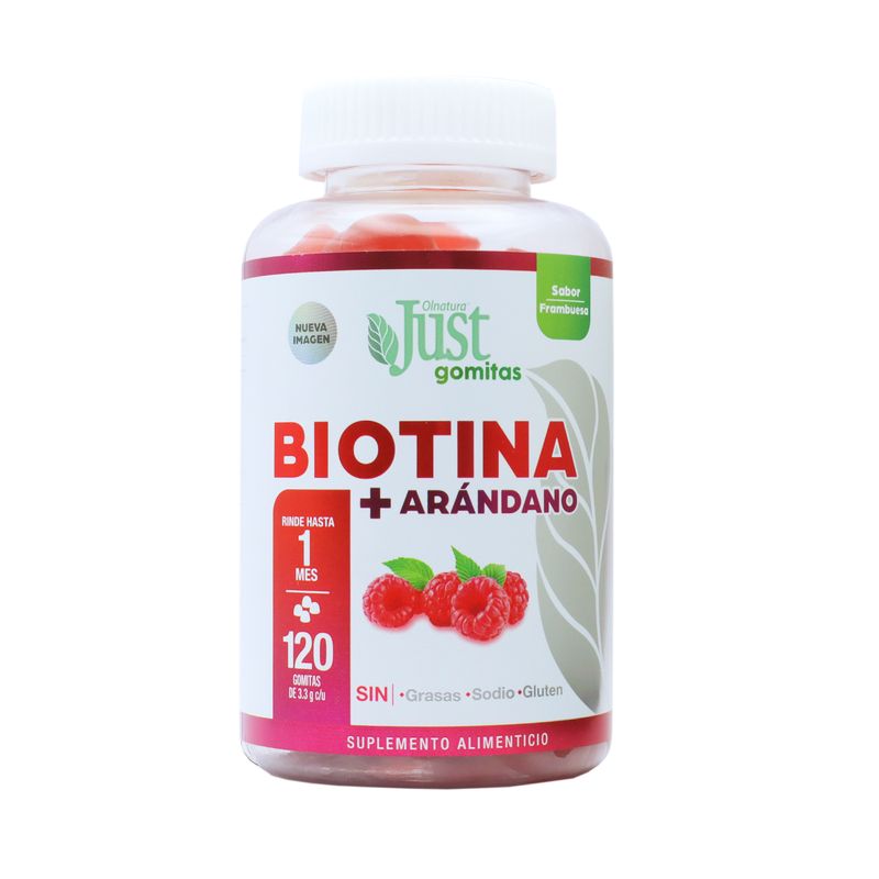 Gomas Biotina+arandano Olnatura Just 120 gomitas sin grasas, sodio, ni gluten.